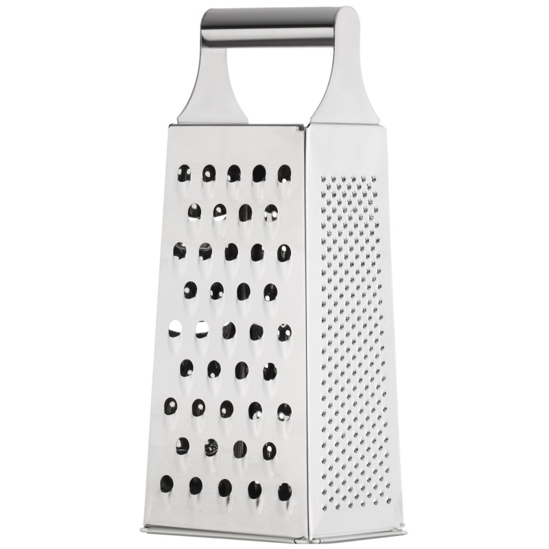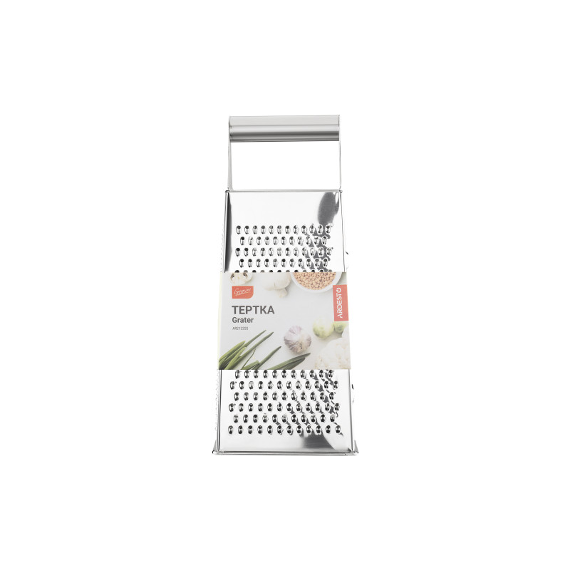 Тертку виготовлено з нержавіючої сталі, яку вважають безпечним і гігієнічним матеріалом. Завдяки 4 гострим поверхням морква для засмажки чи сир для посипання будуть ідеальної форми. А зі зручною нековзкою ручкою зробити це набагато легше. Виріб не призначений для миття в посудомийній машині.