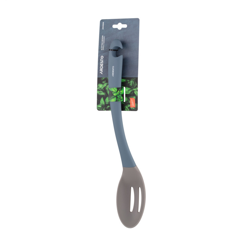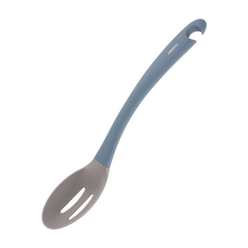 Ложка з прорізами ARDESTO Gemini є практичним та елегантним кухонним аксесуаром, призначеним для щоденного використання. Виготовлена з нейлону, вона забезпечує довговічність і зручність. Руків’я з прорезиненого пластику гарантує комфортний і надійний хват під час приготування їжі. Стильне сіро-блакитне забарвлення додає сучасного вигляду. Завдяки компактному розміру (34,2 × 6,2 × 4 см) можна легко впоратися з різними кулінарними завданнями. Виріб можна безпечно мити в посудомийній машині, що полегшує догляд та економить час.