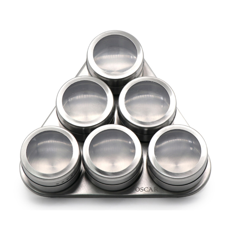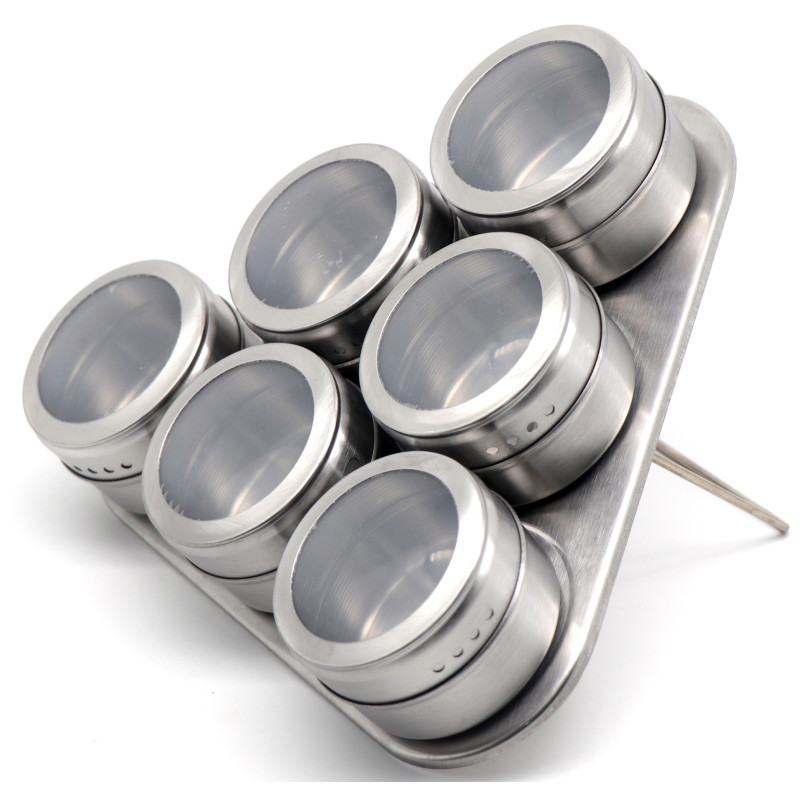 Набір ємностей для спецій серії VERONA, розташованих на стильній підставці, допомагає підтримувати порядок в кухні та забезпечує легкий доступ до різноманітних приправ і спецій під час готування.