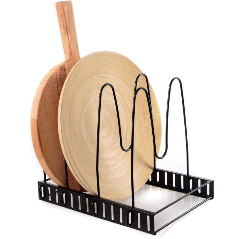 - Ідеально підходить зберігання сковорід, кришок, обробних дошок