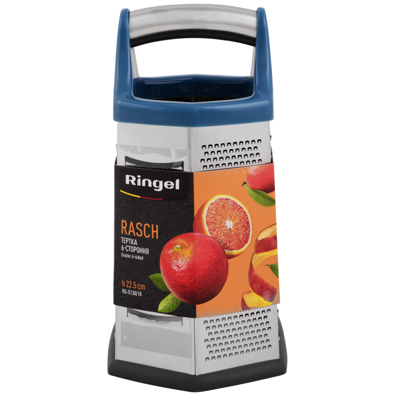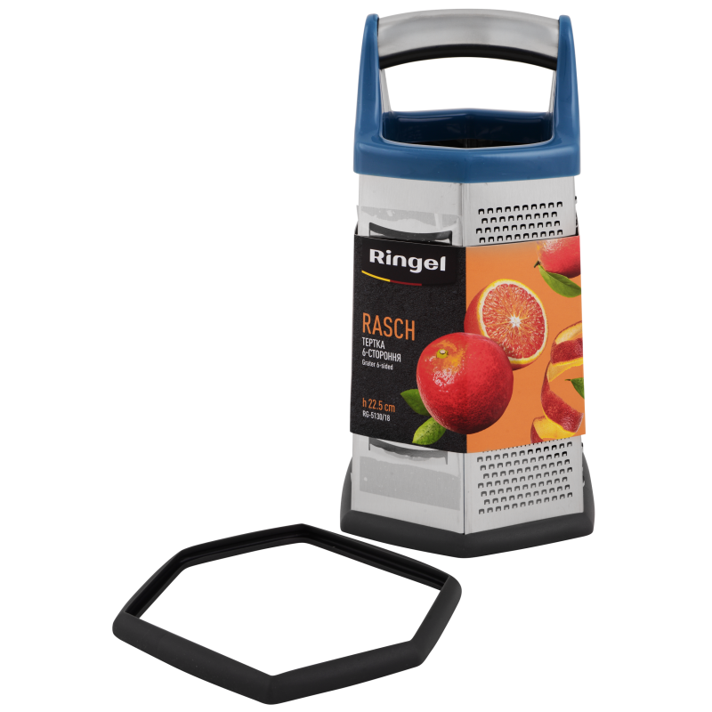Багатосторонні тертки Ringel мають також поверхні-слайсери для звичайної та фігурної нарізки тонкими скибочками. Ергономічні ручки терток Ringel з покриттям Soft Touch і спеціальний нековзкий матеріал підставки дозволяють надійно утримувати тертку на місці під час використання. Вони займають мінімум місця в шафі, тому сподобаються всім, хто цінує кожен сантиметр власної кухні.