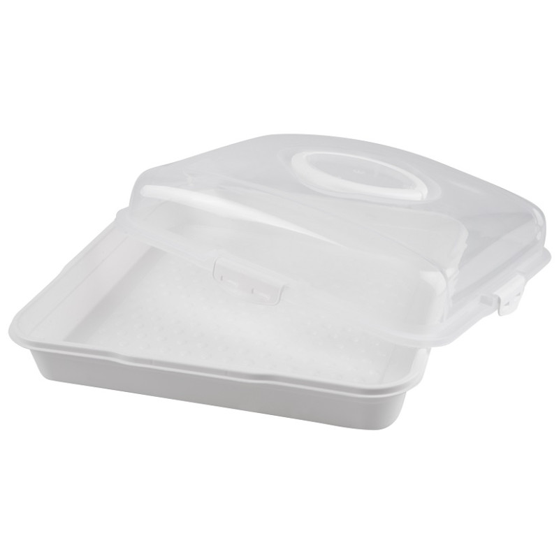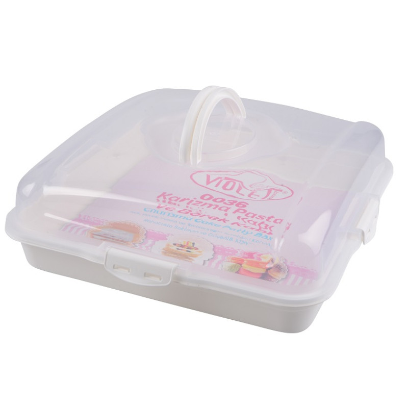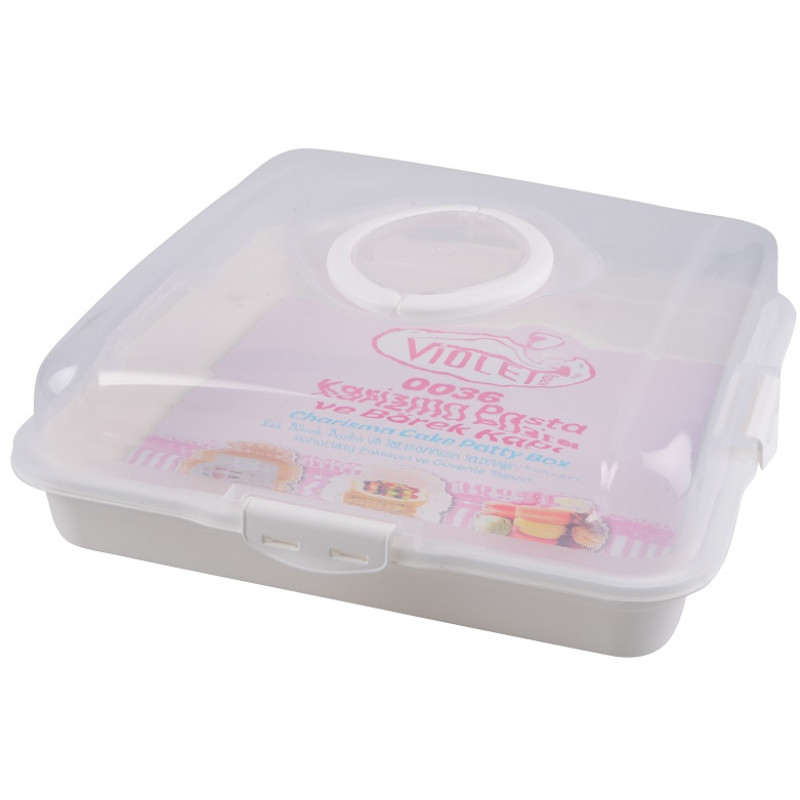 Тортівниця Violet House 0036 Каризма White виготовлена з високоякісного та міцного харчового пластику. Не окислюється, не забарвлюється і не вбирає запахи. Кришка щільно прилягає до піддону, захищаючи від обвітрювання та потрапляння сторонніх запахів. Тортівниця має ручку та бокові застібки завдяки цьому її зручно та безпечно тримати та транспортувати. Розміри (ВхШхД): 13х38х38 см.