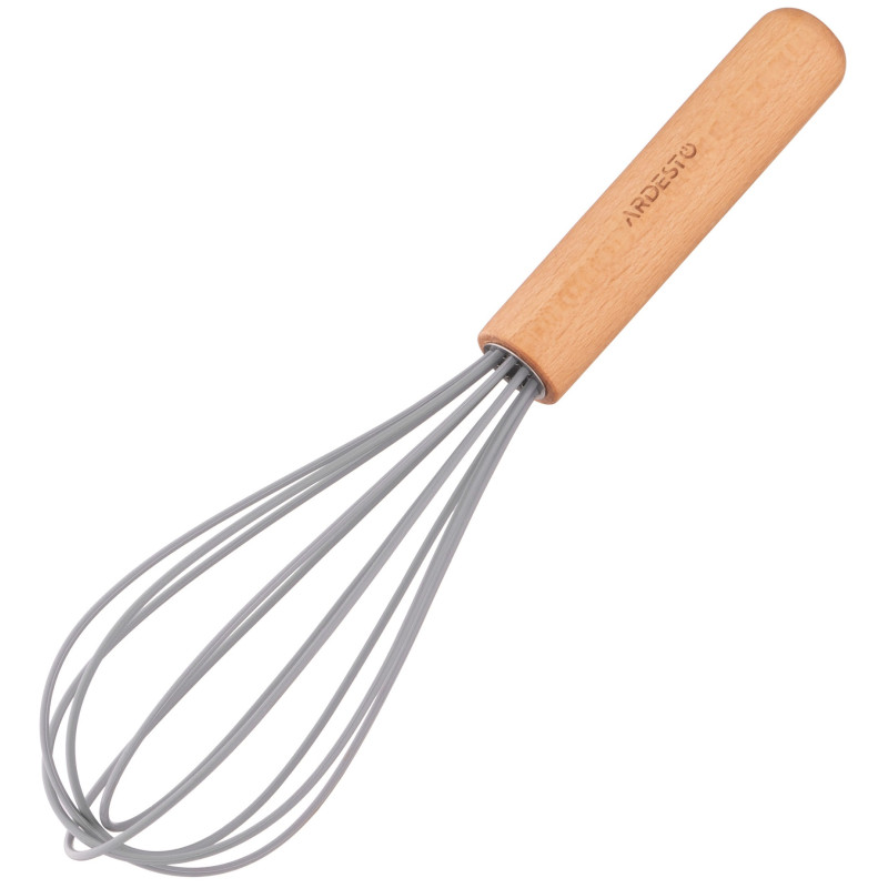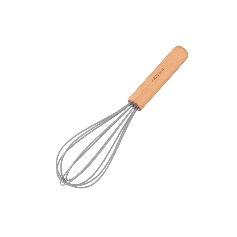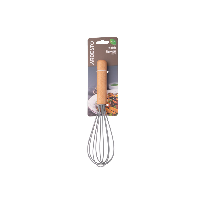 Віничок ARDESTO Midori виготовлений з силікону. Ергономічна ручка з дерева не вислизає і зручно лягає в руку. Розмір – 23,6 см. Виріб не можна мити в посудомийній машині.
