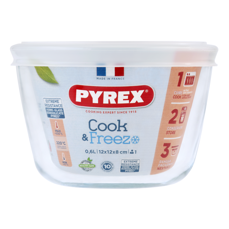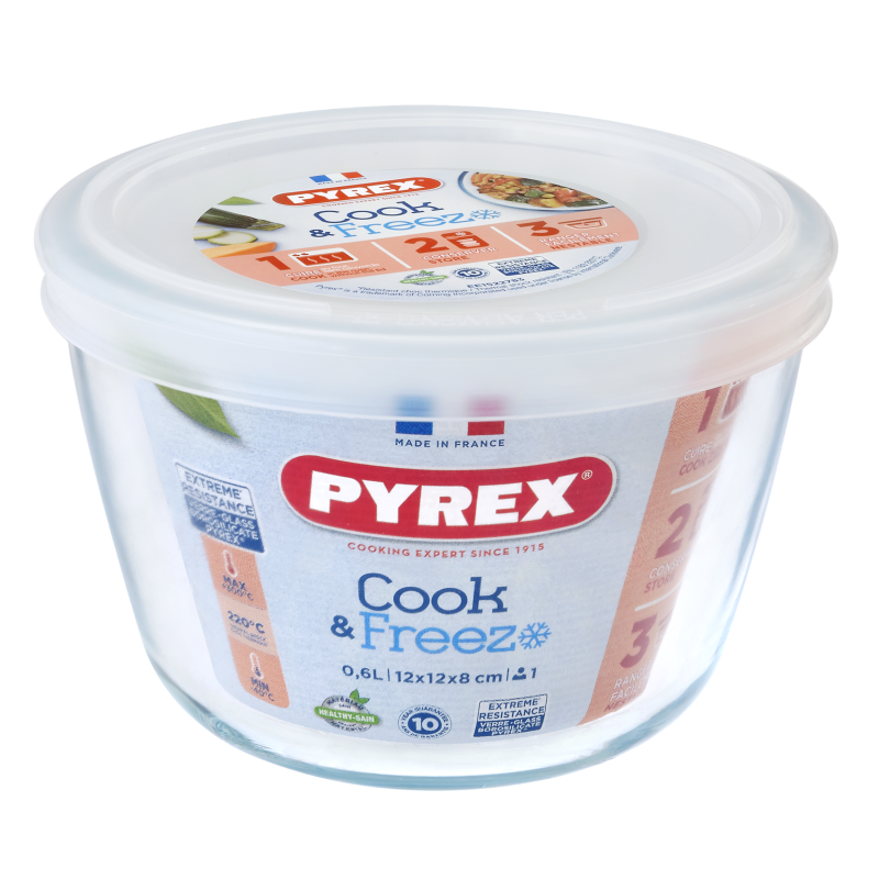 Серія Cook&Freeze від Pyrex – це універсальні жаростійкі скляні контейнери, призначені для приготування страв у духовці, їхнього подальшого охолодження та заморожування. Витримуючи перепади температур до 220°C, вони дозволяють безпечно переносити страви з духовки в морозилку та назад, без ризику пошкодження. Герметичні кришки без BPA забезпечують зручне та герметичне зберігання як у холодильнику, так і в морозильній камері, а компактний дизайн контейнерів економить місце при зберіганні. Ідеальне рішення для тих, хто готує їжу наперед або бажає заморозити залишки страв.