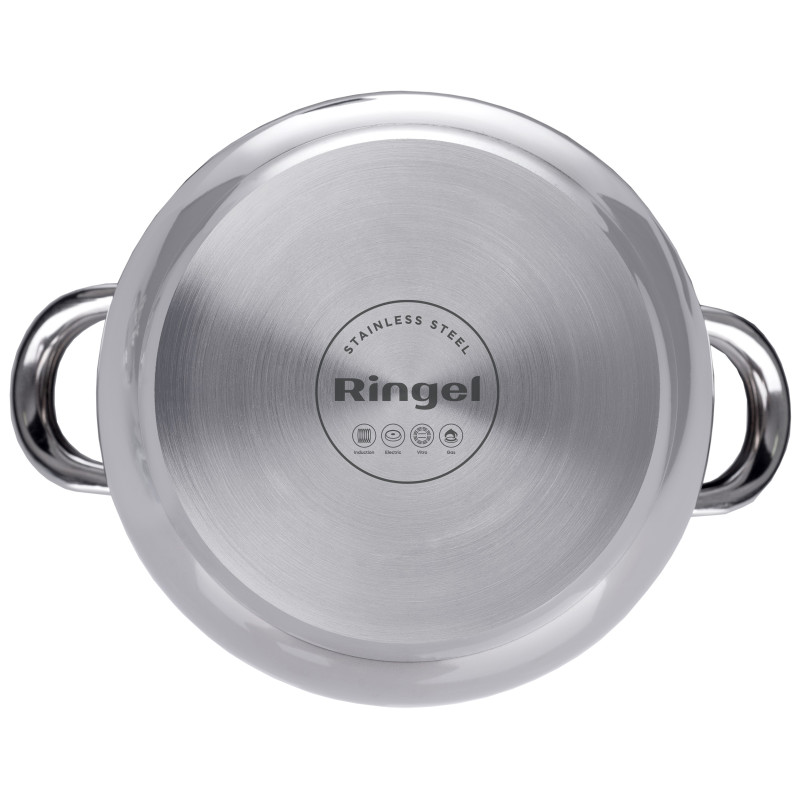 Полірована поверхня каструлі Ringel не лише надає посуду прекрасний зовнішній вигляд, але також забезпечує додатковий захист від корозії. Добре відполірований посуд з міцної нержавіючої сталі простий у догляді та здатен прослужити тривалий час, не втрачаючи свою зовнішню привабливість.