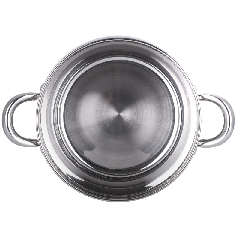 Дно каструлі Ringel виготовлено тришаровим із застосуванням товстої алюмінієвої пластини, герметично запаяної всередині капсуля з нержавіючої сталі. Алюміній має підвищену порівняно зі сталлю теплопровідність, тому така каструля швидше нагрівається і краще розподіляє тепло по всій поверхні, що робить приготування їжі зручнішим і економічнішим.