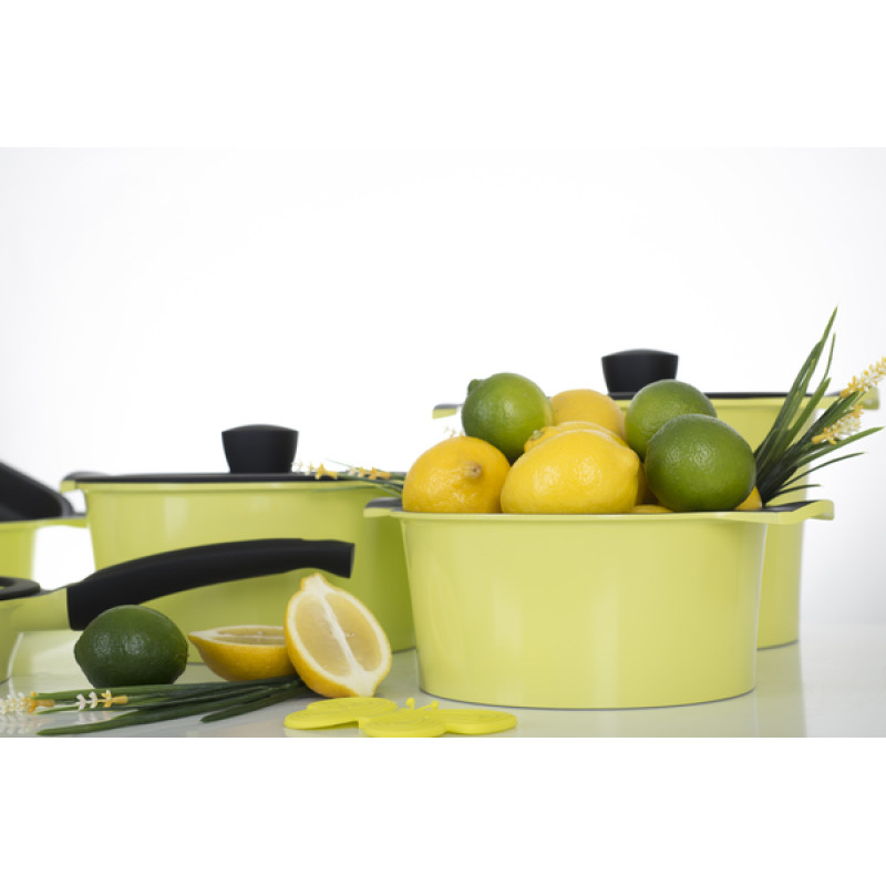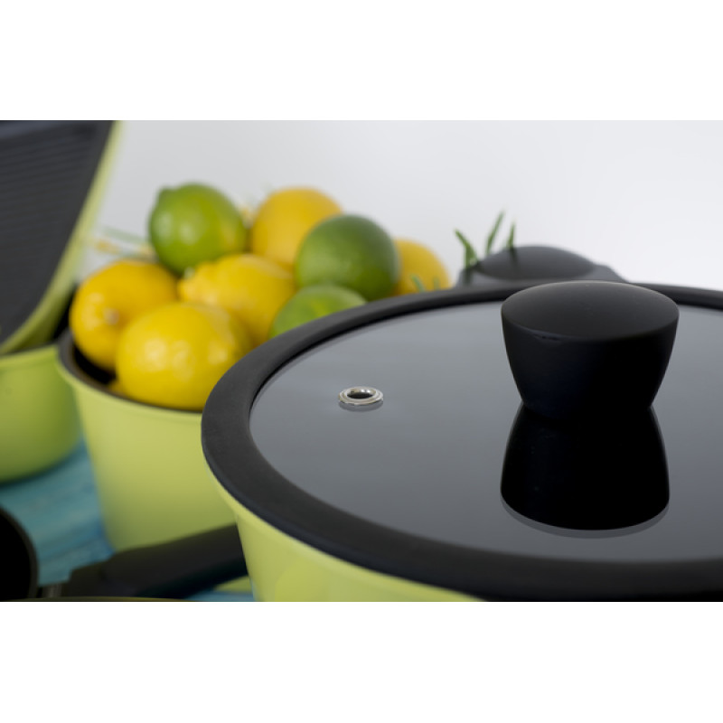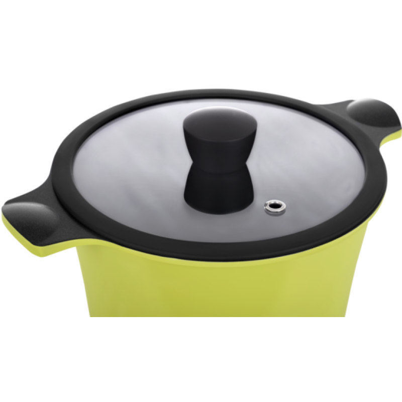 Приємний і стильний вигляд, завдяки емальованому кольоровому покриттю, алюмінієвої каструлі серії Zitrone від Ringel перетворює її на справжню прикрасу будь-якої кухні. Крім того, вдала конструкція даної каструлі робить її використання максимально зручним завдяки зручним ручкам, а також кришці з термостійкого скла з клапаном для виходу пари. Прозора конструкція дозволяє стежити за приготуванням їжі, не знімаючи кришки з каструлі. Силіконовий обідок має додаткові клапани для виведення пари.