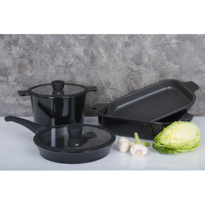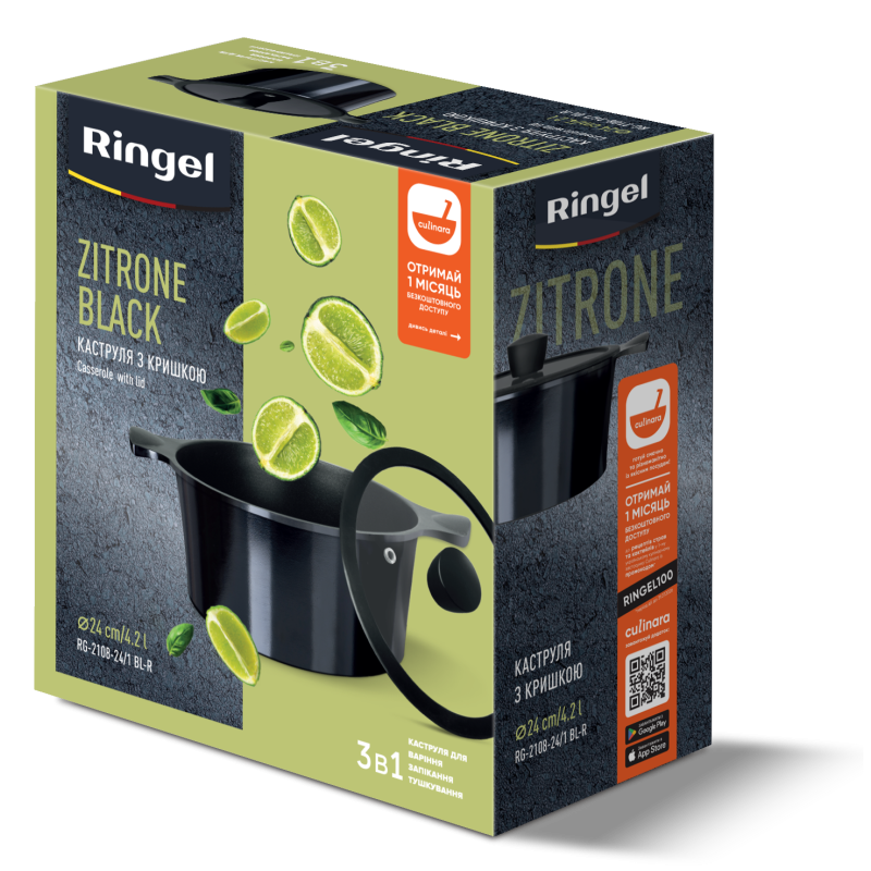 Каструля з литого алюмінію серії Zitrone від Ringel відрізняється товстостінною конструкцією та надійним антипригарним покриттям, завдяки чому цей вид посуду є максимально універсальним рішенням для приготування безлічі видів страв.