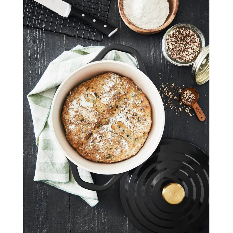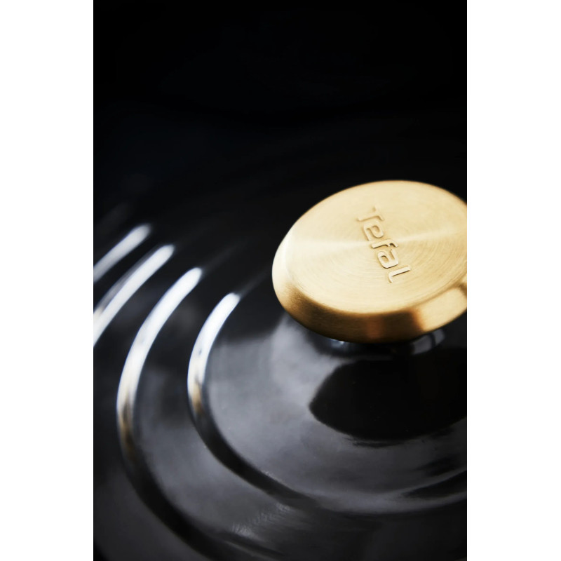 Каструля Tefal Air об’ємом 3,1 л виготовлена з литого алюмінію та має керамічне внутрішнє покриття для зручного щоденного приготування страв. Конструкція значно легша за класичні чавунні моделі, а кришка з конденсаційним ефектом допомагає зберігати соковитість інгредієнтів. Модель сумісна з усіма типами плит, витримує запікання в духовці до 250 °C та підтримує миття в посудомийній машині.