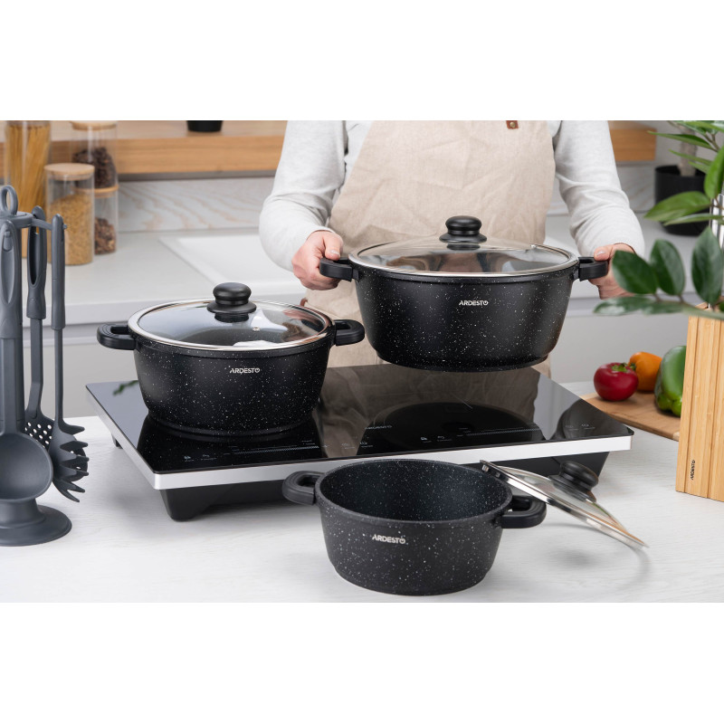 Каструля ARDESTO Gemini Anzio вироблена з литого алюмінію. Її об’єм становить 4,4 л, а діаметр – 24 см. Стінки завтовшки 1,7 мм, тоді як товщина дна складає 4,2 мм – запорука рівномірного нагрівання. Завдяки протипригарному мармуровому покриттю процес приготування буде суттєво простішим.
