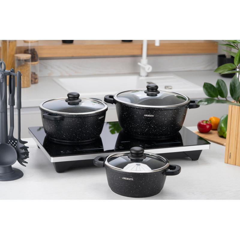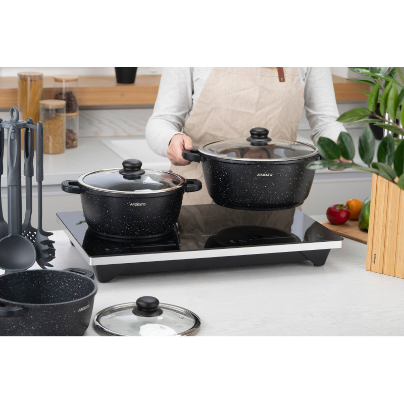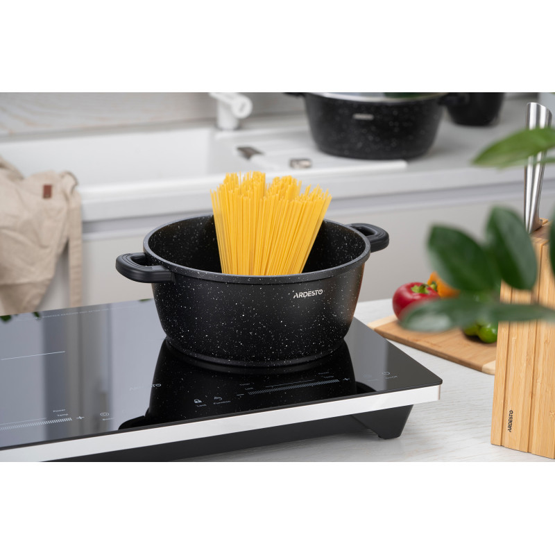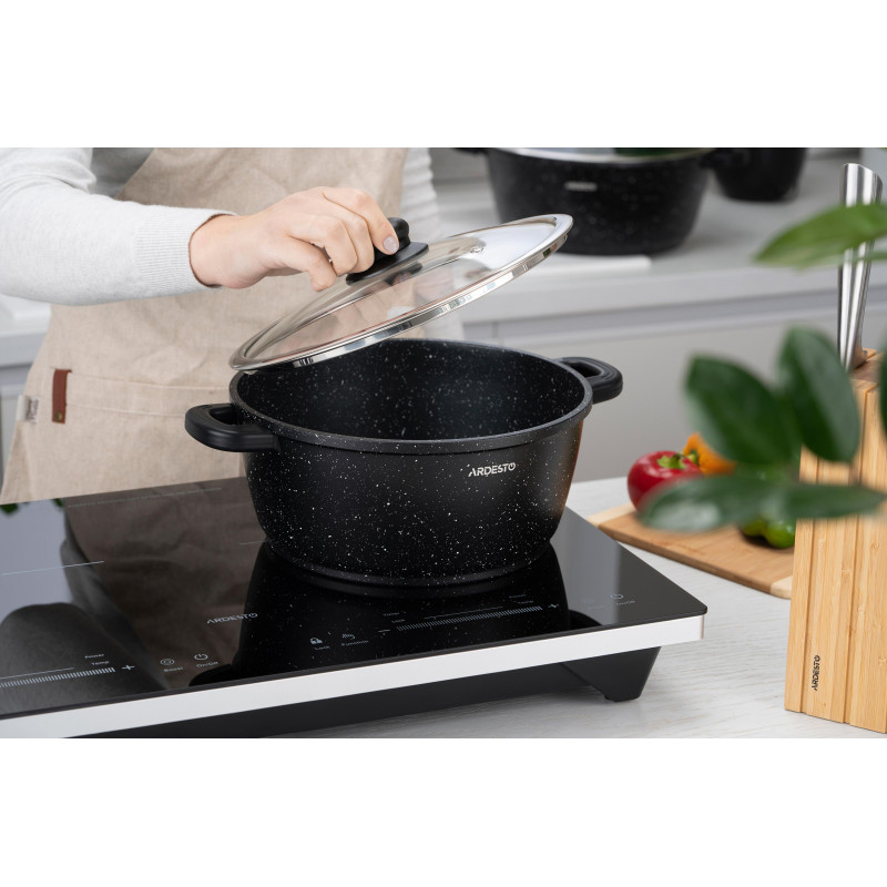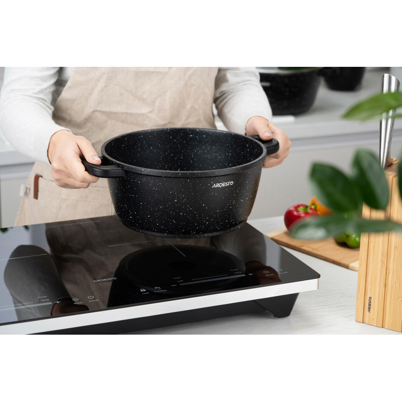 Каструля ARDESTO Gemini Anzio вироблена з литого алюмінію. Її об’єм становить 6,4 л, а діаметр – 28 см. Стінки завтовшки 1,7 мм, тоді як товщина дна складає 4,2 мм – запорука рівномірного нагрівання. Завдяки протипригарному мармуровому покриттю процес приготування буде суттєво простішим.