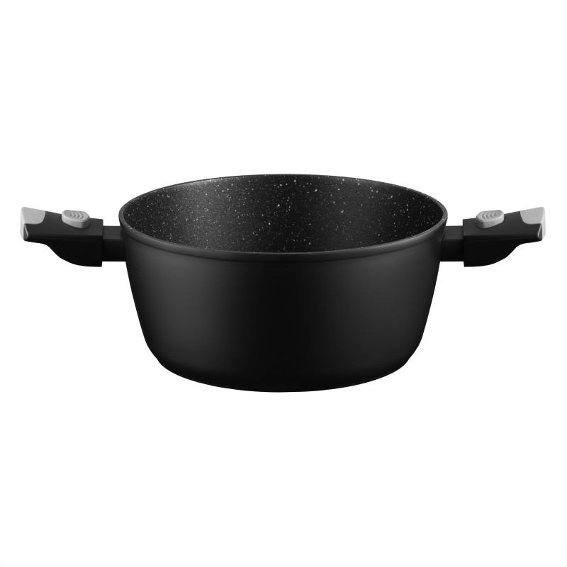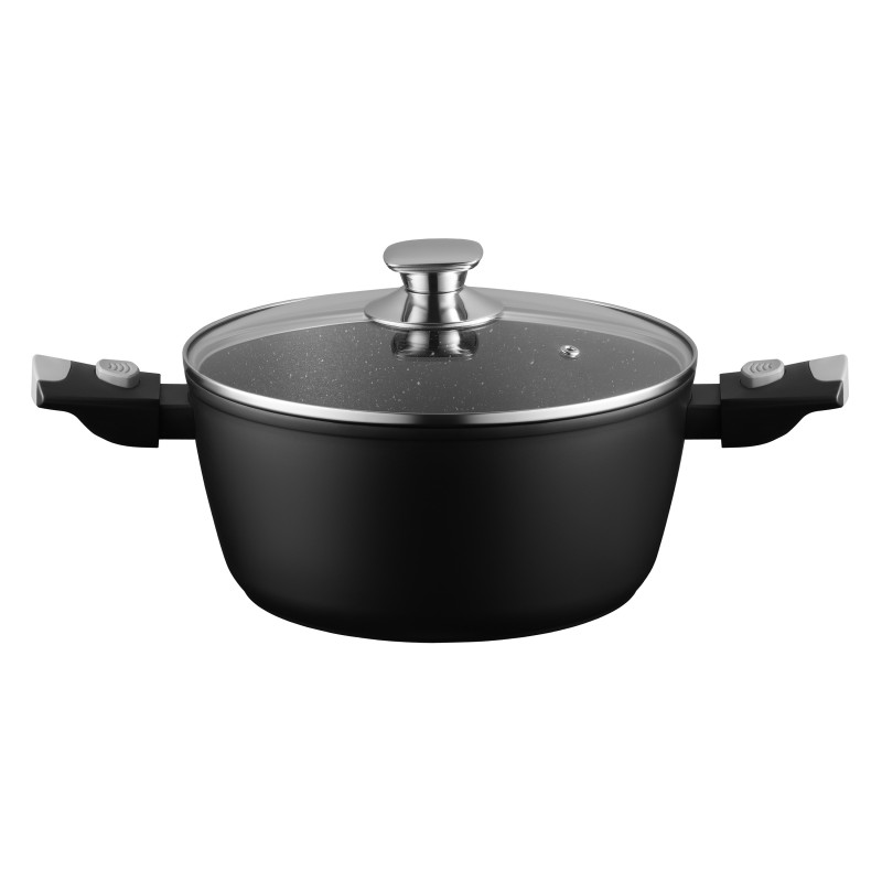 Каструля ARDESTO Gemini Bari об’ємом 3,9 л – надійний посуд для приготування великих порцій. Чорний колір виробу додає виразності, а дизайн – відчуття впорядкованості на кухні. Кований алюміній забезпечує рівномірне розподілення тепла, а двошарове мармурове покриття Xylan Plus не дає шансів пригоранню. Усе збалансовано для стабільної роботи: діаметр 24 см, висота стінок 11 см, товщина дна – 4 мм. Знімне бакелітове руків’я легко від’єднати перед запіканням у духовці (до 220 °C), а скляна кришка з отвором для пари та елементами з нержавіючої сталі дає змогу контролювати процес без втрати тепла. Сумісна з газовими, електричними, склокерамічними, галогенними та індукційними плитами. Каструлю легко очищувати в посудомийній машині.
