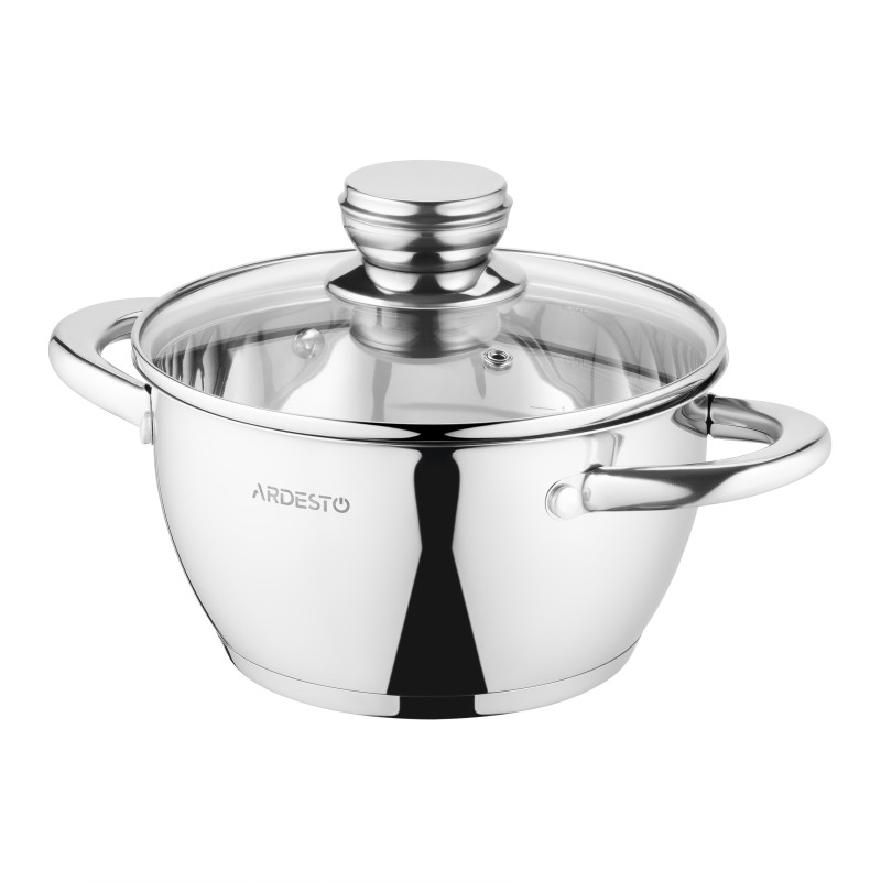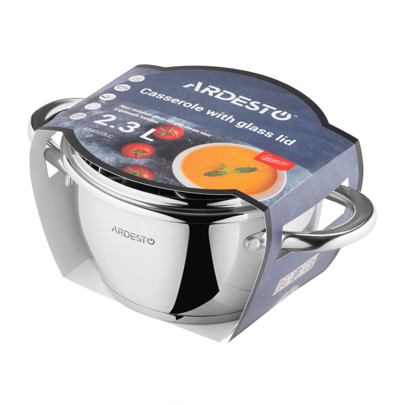 Каструля ARDESTO Gemini Lucca об’ємом 2,3 л – це практичний вибір для щоденного приготування страв, де важлива точність і надійність. Виріб виготовлено з нержавіючої сталі. Діаметр каструлі становить 18 см, висота 10 см, а товщина стінок 0,5 мм і дна 2,9 мм, що забезпечує рівномірне прогрівання без втрати тепла. Скляна кришка з отвором для пари дає змогу контролювати процес готування, не знімаючи її. З мірною шкалою всередині корпусу можна точно дозувати рідину. Руків’я з нержавіючої сталі зручно лежать у руці та залишаються холодними навіть за тривалого нагрівання. Каструля сумісна з усіма типами плит – газовими, електричними, склокерамічними, галогенними та індукційними. Виріб можна мити в посудомийній машині.