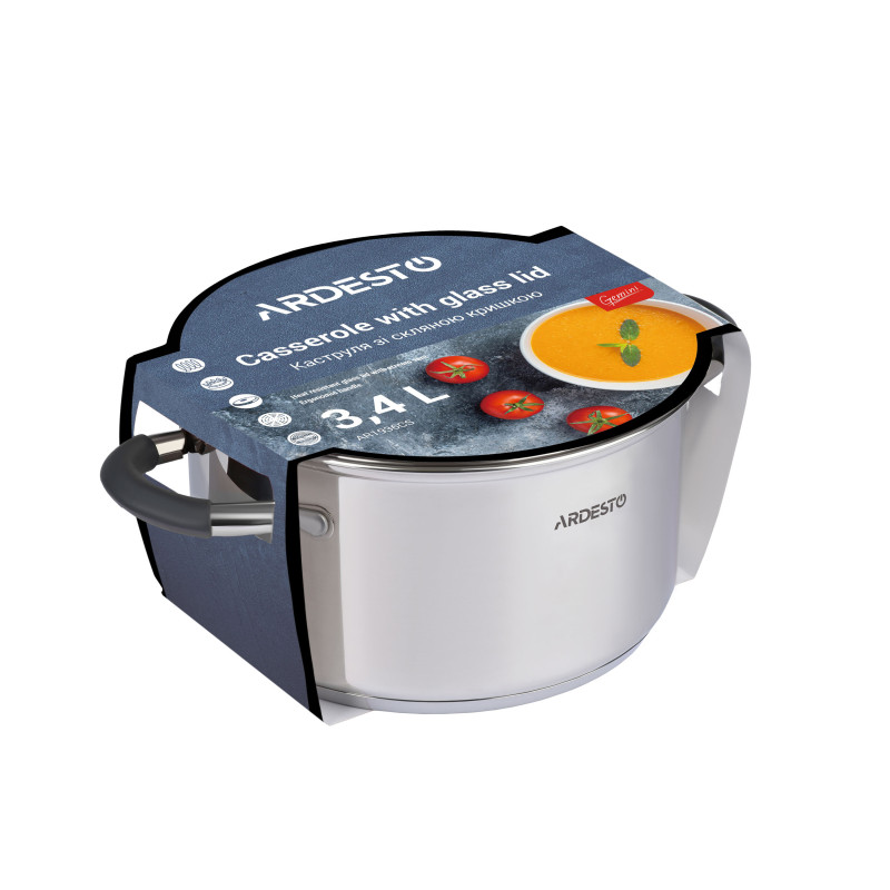 Каструля серії Gemini виготовлена з нержавіючої сталі, а ручки отримали силіконове покриття. Каструля поставляється з термостійкою скляною кришкою з отвором для пари та сумісна з усіма видами плит, включаючи індукційну.