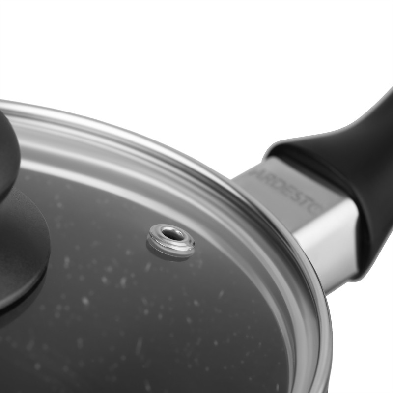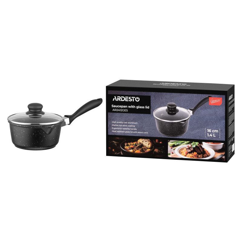 Ківш Gemini Anzio – це компактний кухонний помічник, створений для щоденних завдань, де важлива точність і комфорт. Литий алюміній забезпечує стабільне нагрівання, а двошарове мармурове протипригарне покриття PFLUON сприяє легкому догляду та охайному приготуванню. Об’єм 1,4 л, діаметр 16 см і висота стінок 8 см – оптимальні параметри для соусів, кремів чи невеликих порцій. Бакелітове руків’я з покриттям Soft Touch зручно лежить у руці та не нагрівається, навіть за тривалого використання. Кришку з термостійкого скла оснащено отвором для виходу пари, що допомагає контролювати процес готування. Чорний колір додає стриманої естетики. Ківш сумісний з усіма типами плит. Мити потрібно вручну, зберігаючи якість покриття на довгі роки.