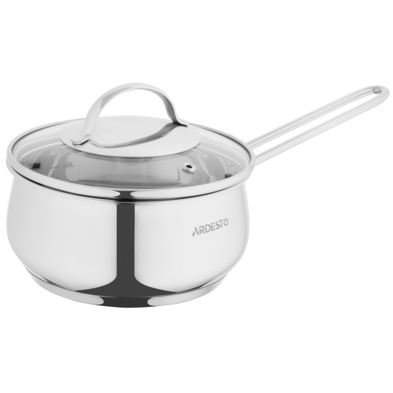 Ківш ARDESTO Gemini Liguria з нержавіючої сталі стане у пригоді для виконання простих завдань, на кшталт варіння яєць чи соусу до пасти. Об’єм ківша 1,8 л. Дно завтовшки 3 мм є запорукою, що страва не пригорить і не пристане. Завдяки матеріалу виготовлення ківш є зручним, функціональним і довговічним. Посуд можна використовувати для приготування на газовій, електричній, склокерамічній, галогенній чи індукційній плиті. Зручності використання додає мірна шкала на стінках ківша та скляна кришка з отвором для пари. Виріб можна мити в посудомийній машині.