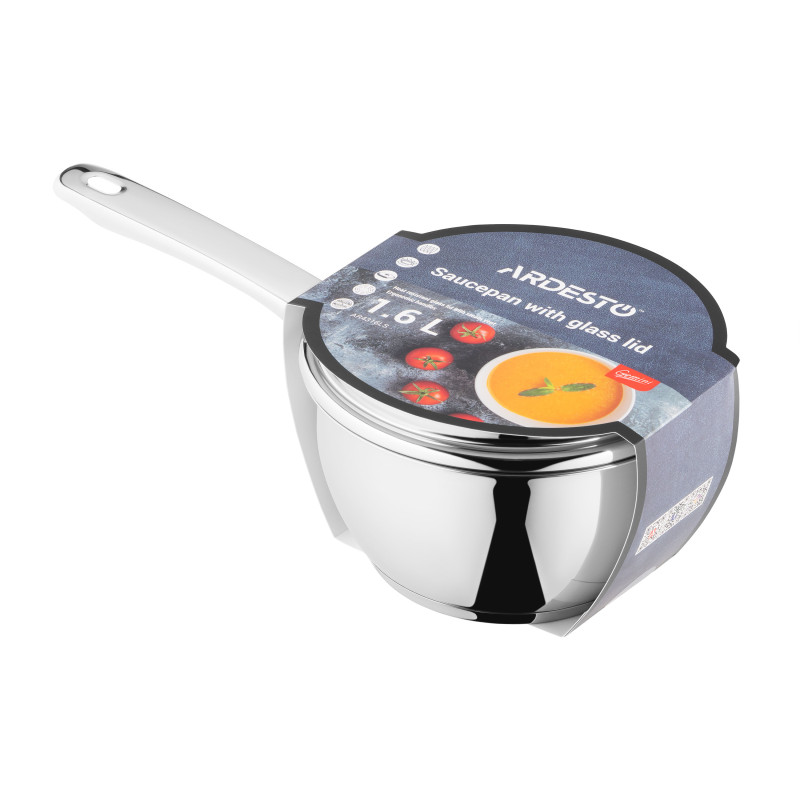 Ківш зі скляною кришкою ARDESTO Gemini Lucca, 1.6л, нержавіюча сталь