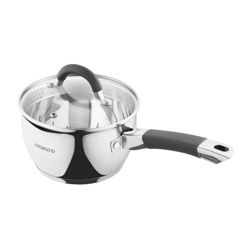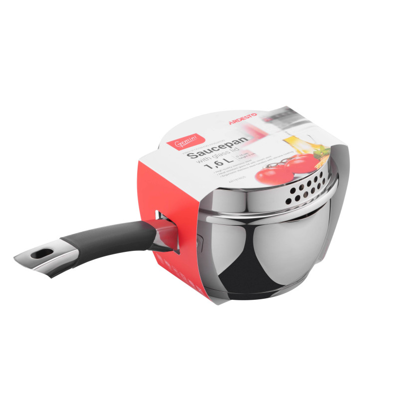 Ківш ARDESTO Gemini Livorno об’ємом 1,6 л виготовлено з нержавіючої сталі та оснащено ручками з силіконовим покриттям. Є скляна кришка з отвором для пари. На стінки ковша нанесено мірну шкалу. Для зливу води у конструкції ковша передбачений носик та спеціальні отвори в кришці. Ківш можна використовувати на газових, електричних, склокерамічних, галогенних й індукційних плитах. Не рекомендовано мити в посудомийній машині.