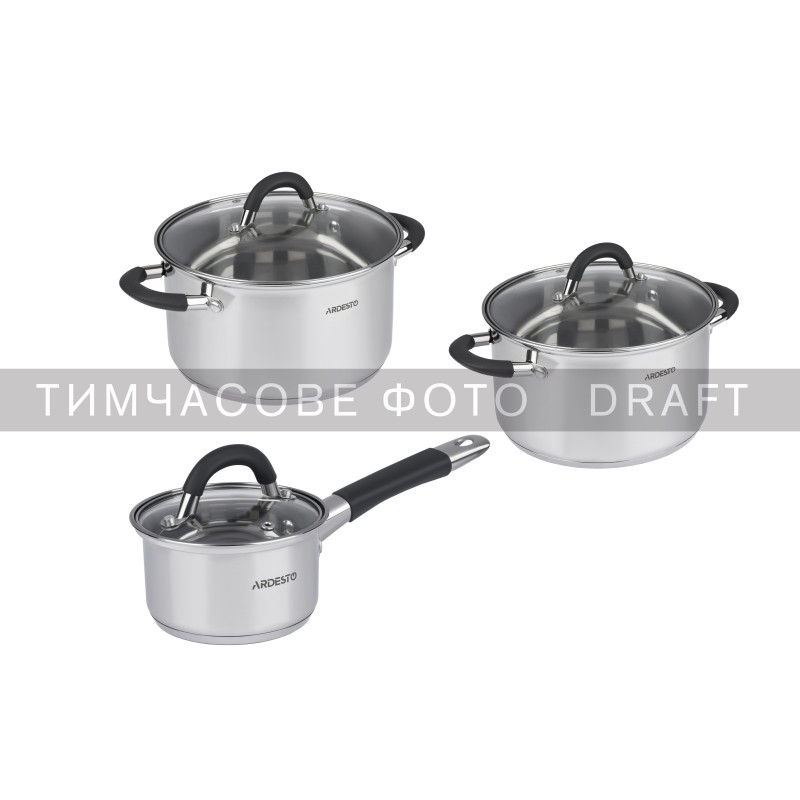 Набір посуду ARDESTO Gemini Salerno – це функціональний комплект із 6 предметів, створений для щоденного використання вдома або на професійній кухні. У його комплектованні – ківш об’ємом 1,2 л (діаметр 14 см, висота 8 см) та дві каструлі: 2,3 л (18 × 10 см) і 3,4 л (20 × 11,5 см). Кожна каструля з прозорою термостійкою кришкою, яка має отвір для виходу пари. Усі елементи виготовлено з нержавіючої сталі, а руків’я доповнено силіконовим покриттям, яке забезпечує комфортне захоплення навіть за високої температури. Усередині посуду нанесено мірну шкалу, яка забезпечує точне дозування рідини. Завдяки стінкам завтовшки 0,5 мм і дну 2,9 мм гарантовано рівномірне нагрівання та стабільність конструкції. Вироби сумісні з усіма типами плит – газовими, електричними, склокерамічними, галогенними й індукційними, тож набір є універсальним рішенням для будь-якої кухні. Миття в посудомийній машині не рекомендовано, гладеньку поверхню легко очищувати вручну.