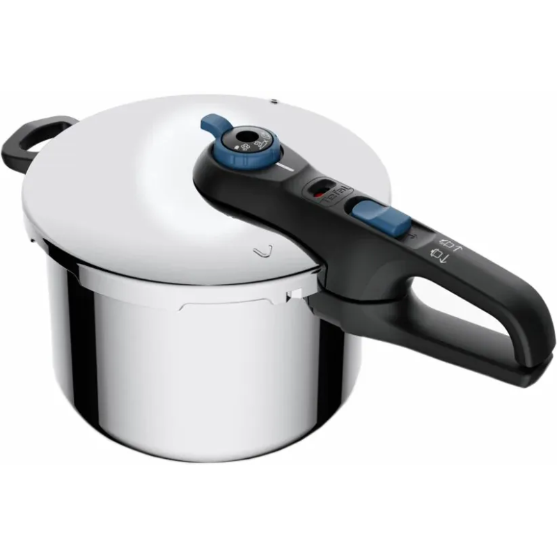 Tefal Secure Trendy — скороварка для швидкого та безпечного приготування: до 2 разів швидше, 2 режими приготування, 5-точкова система безпеки. Сумісна з усіма типами плит, включно з індукцією. Чашу можна мити в посудомийній машині (кришка — вручну). Підійде для м’яса, овочів, риби й десертів.