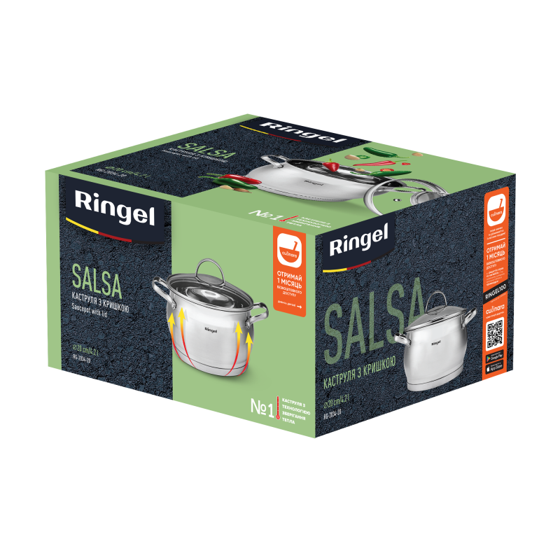 Усі каструлі RINGEL вироблені за найновітнішою технологією зберігання тепла. Потовщене капсульне дно швидко та рівномірно передає тепло страві, що дозволяє скоротити час на приготування і зберегти максимум корисних речовин у стравах, а потовщені стінки каструль RINGEL забезпечують максимально довге утримання страви теплою, без необхідності додаткового розігрівання.