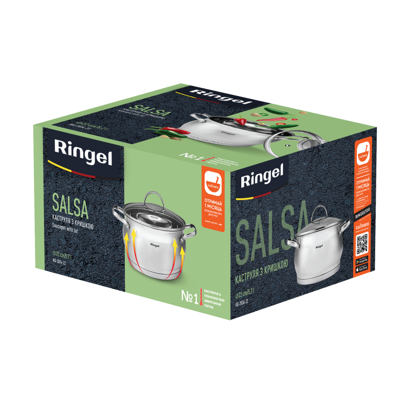 Усі каструлі RINGEL вироблені за найновітнішою технологією зберігання тепла. Потовщене капсульне дно швидко та рівномірно передає тепло страві, що дозволяє скоротити час на приготування і зберегти максимум корисних речовин у стравах, а потовщені стінки каструль RINGEL забезпечують максимально довге утримання страви теплою, без необхідності додаткового розігрівання.