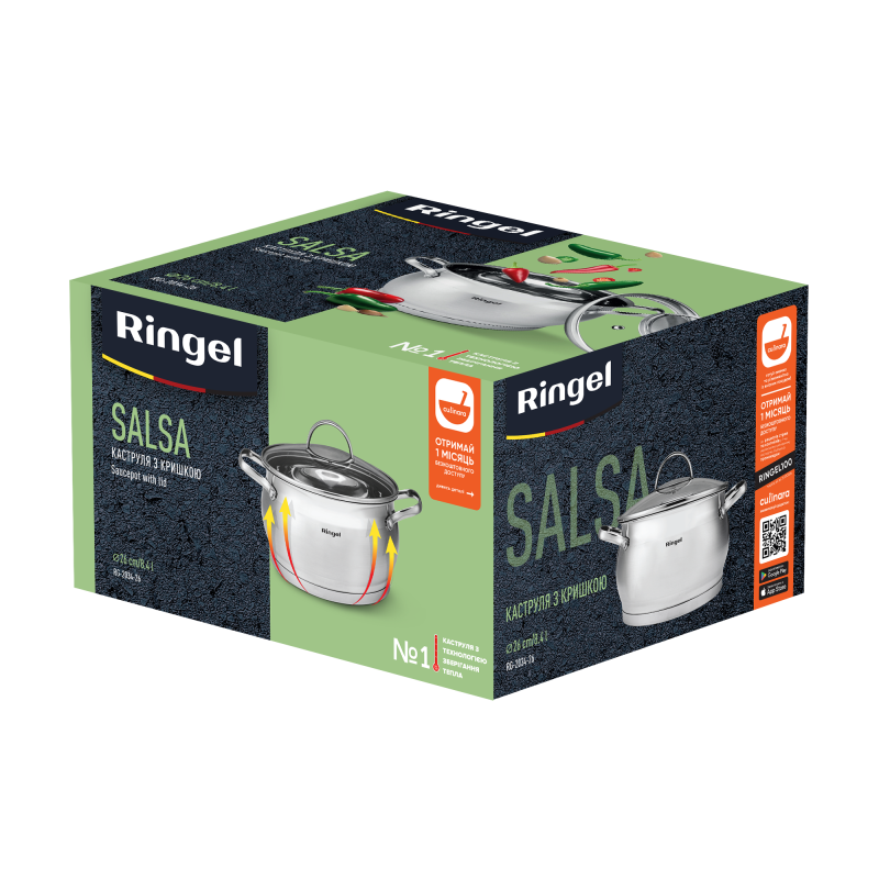 Усі каструлі RINGEL вироблені за найновітнішою технологією зберігання тепла. Потовщене капсульне дно швидко та рівномірно передає тепло страві, що дозволяє скоротити час на приготування і зберегти максимум корисних речовин у стравах, а потовщені стінки каструль RINGEL забезпечують максимально довге утримання страви теплою, без необхідності додаткового розігрівання.