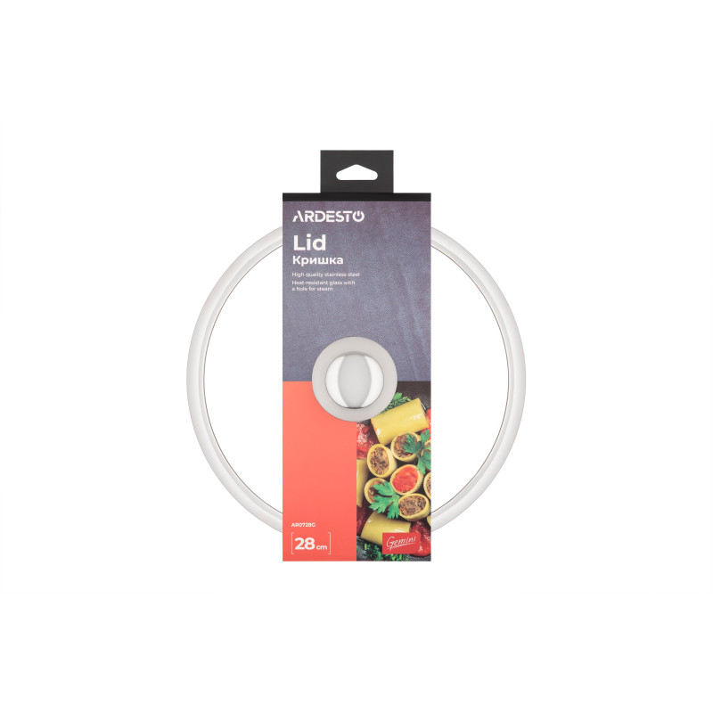 Кришка ARDESTO Gemini, 28см, термостійке скло, нержавіюча сталь