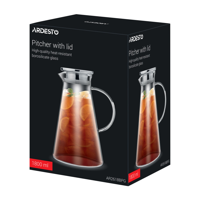 Глечик виготовлено з екологічного боросилікатного скла, яке вирізняється міцністю і стійкістю до перепадів температури, що гарантує тривале слугування і безпечне використання. Завдяки термостійкості виробу, його можна використовувати як для крижаних лимонадів, так і для подавання гарячих напоїв, наприклад, узвару чи трав’яного чаю. Кришку з нержавіючої сталі, доповнено силіконовим ущільнювачем, завдяки чому будь-який напій буде зберігати свіжість і аромат. Об’єм моделі – 1 800 мл, тож це ліпший вибір для сімейних обідів і свят, вечірок і зустрічей у колі друзів. Після використання його легко очистити в посудомийній машині, що зумовлює практичність для повсякденного вжитку.