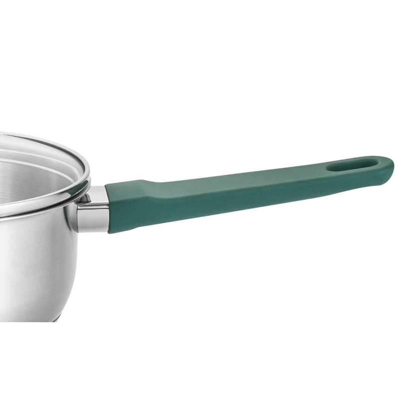 - Кришка з термостійкого скла з отвором для випуску пари та металевим обідком для оберігання від сколів