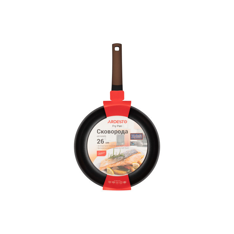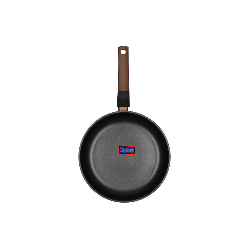 Алюмінієва сковорода Gemini коричневого кольору з багатошаровим антипригарним покриттям Xylan Plus® та термостійкою бакелітовою ручкою. Сковорода Gemini сумісна з усіма видами плит. Не придатна для використання в посудомийній машині.