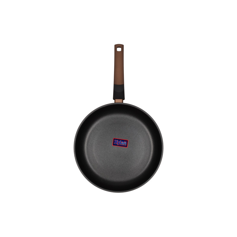Алюмінієва сковорода Gemini коричневого кольору з багатошаровим антипригарним покриттям Xylan Plus® та термостійкою бакелітовою ручкою. Сковорода Gemini сумісна з усіма видами плит. Не придатна для використання в посудомийній машині.