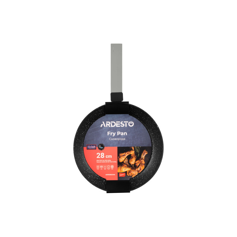 Для виробництва ARDESTO Gemini Marmo використано кований алюміній. Діаметр моделі становить 28 см. Зсередини поверхня сковороди вкрита протипригарним покриттям Xylan Plus, конструкцією передбачено soft-touch-руків’я. За висоти 5,3 см товщина бічних стінок складає 3/4 мм, а дна – 3 мм. Модель не рекомендовано мити в посудомийній машині. Сумісна з різними видами плит, а саме: електричними, склокерамічними, газовими, індукційними й галогенними.