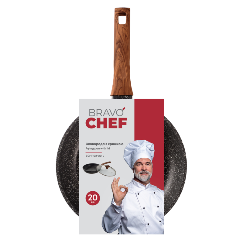 Сковорода з кришкою Bravo Chef Діаметр: 20 см Висота стінки: 4.7 см Матеріал: алюміній Наявність кришки: так