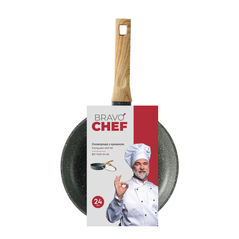 Сковорода з кришкою Bravo Chef Діаметр: 24 см Висота стінки: 6.5 см Матеріал: алюміній Наявність кришки: так
