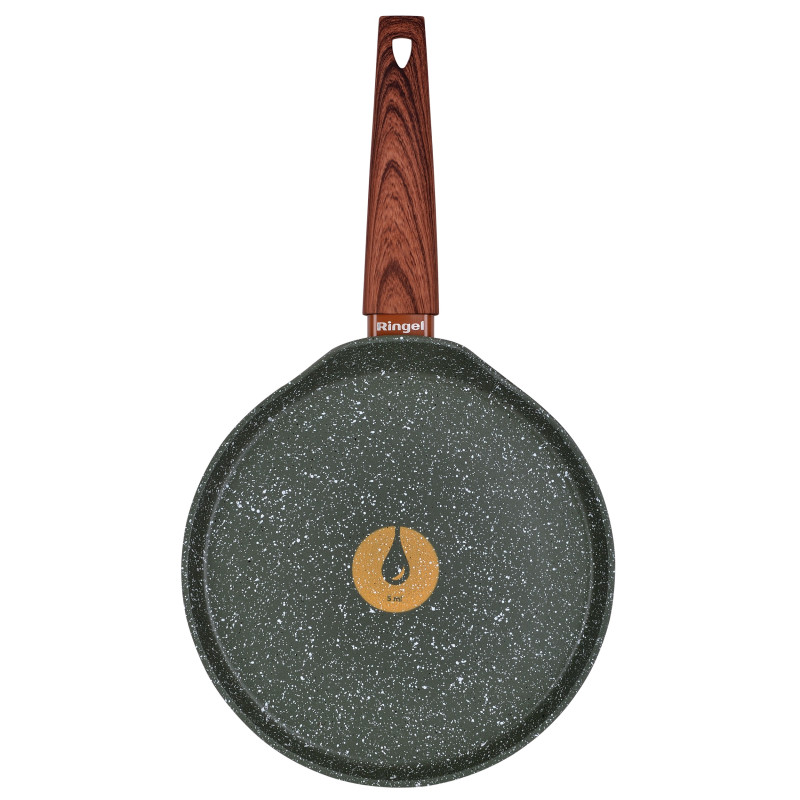 В кожну сковороду RINGEL інтегрована перша в світі система дозування олії. Найменша поділка системи відповідає 5 мл олії, а більша – 10 мл олії. За допомогою цієї системи ви зможете легко та швидко приготувати водночас здорові та смачні страви з використання мінімуму жиру та з максимальним збереженням корисних речовин у страві.