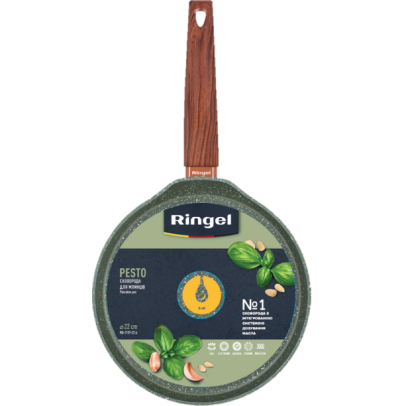 Серія сковорідок PESTO від Ringel - універсальний помічник на кухні для приготування і розігрівання найрізноманітнішої їжі. Виготовлена з високоякісного кованого алюмінію 3,2 мм, ця сковорода є міцним посудом зі швидким і рівномірним нагріванням. У даній серії використовується мармурове антипригарне покриття Marble, що що робить її дуже довговічним та надійним виробом і дозволяє використовувати менше олії.