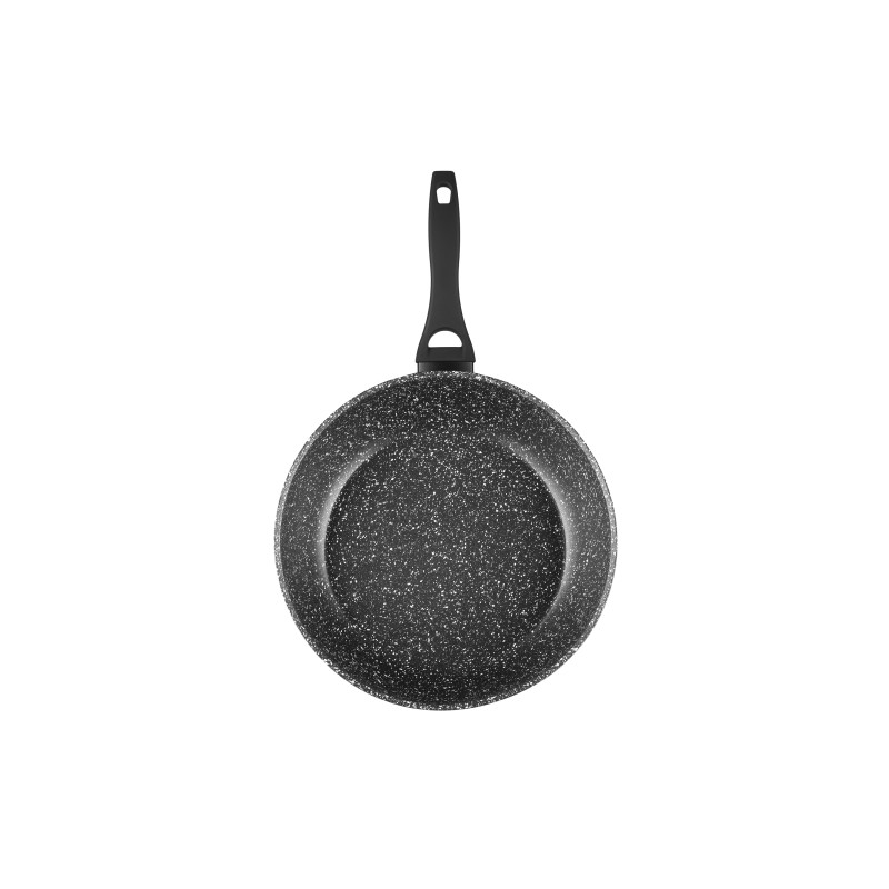 Алюмінієва глибока сковорода серії Gemini Gourmet Anzio чорного кольору з мармуровим антипригарним покриттям та термостійкою бакелітовою ручкою з Soft-touch покриттям. Сковорода сумісна з усіма видами плит, включаючи індукційну.