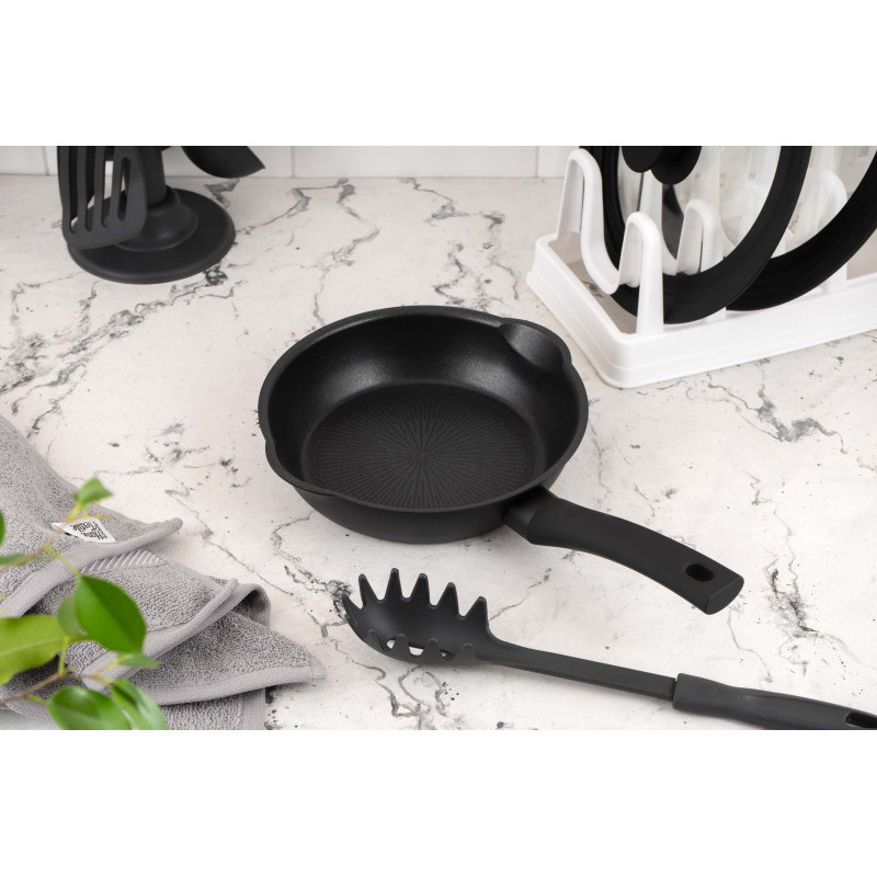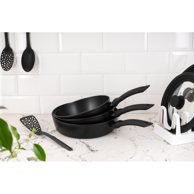 Gemini Gourmet Bolzano – містка сковорода з високими стінками та зручним руків’ям, що знадобиться, зокрема, для тушкування або смаження. Діаметр виробу – 26 см. Сковорода, виготовлена з кованого алюмінію, швидко й рівномірно нагрівається. Високі стінки (7 см) запобігають розбризкуванню жиру, тож варильну поверхню доведеться прибирати трохи рідше. Щодо інших особливостей: внутрішня поверхня сковорідки має протипригарне покриття, а руків’я – soft-touch.