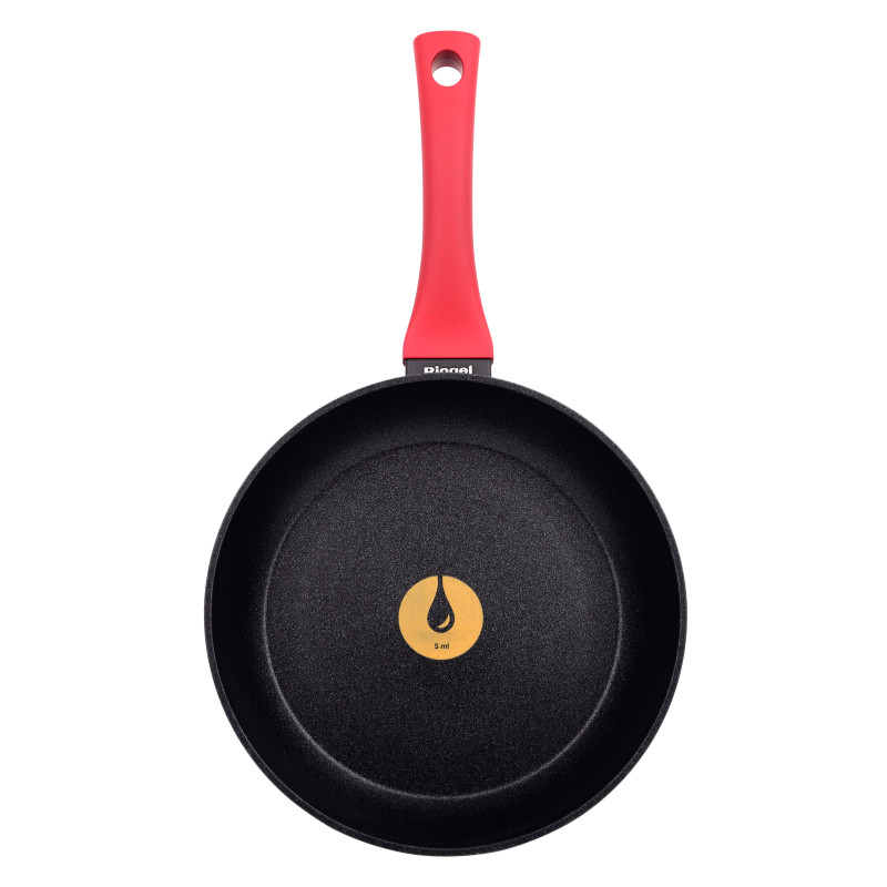 Зручність використання даної сковороди досягається завдяки ергономічній ручці з бакеліту. Додаткове покриття soft-touch, крім тактильного задоволення, захищає руки від опіків і дозволяє не вислизає навіть з вологих долонь. А червоний колір ручки подарує вашій кухні яскравий стильний акцент.