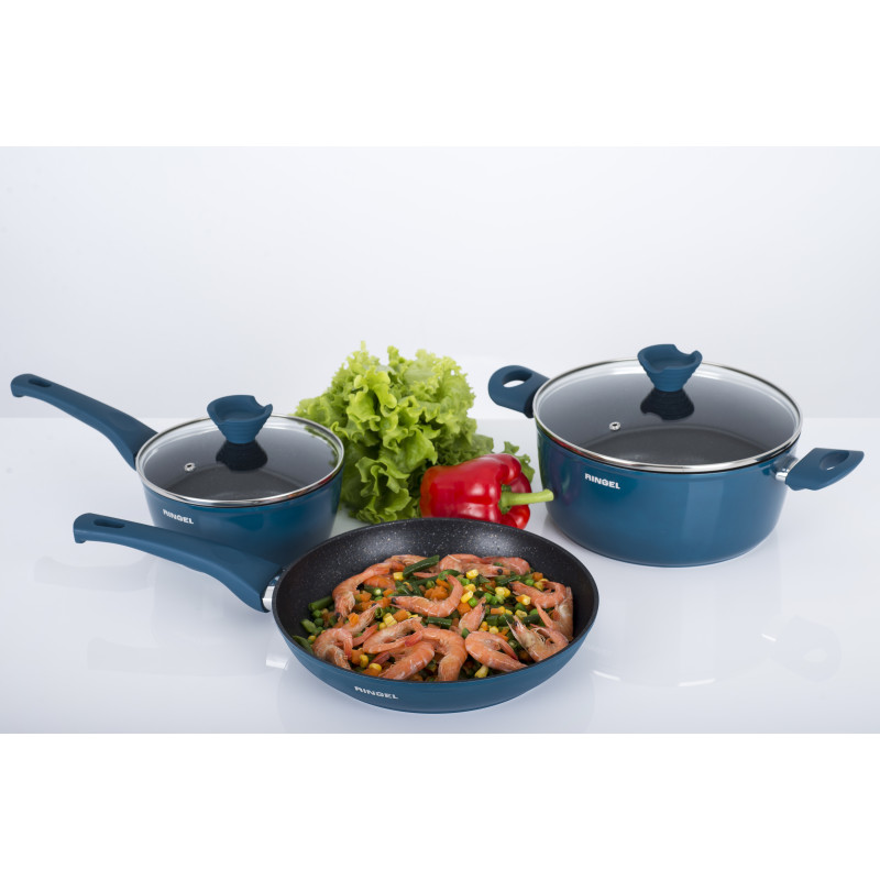 Сковорода Ringel SUNELI - універсальний інструмент для приготування і розігрівання найрізноманітнішої їжі. Виготовлена з кованого алюмінію, дана сковорода є легким і міцним посудом зі швидким і рівномірним нагріванням, а довговічне антипригарне покриття від світового виробника PFULON дозволяє готувати корисні і смачні страви.