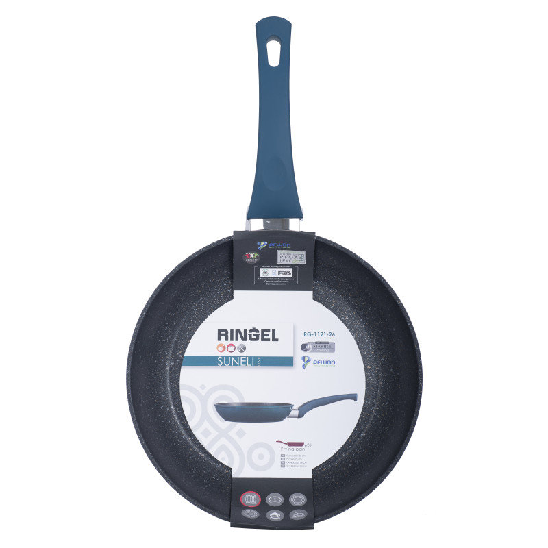 Сковорода Ringel SUNELI - універсальний інструмент для приготування і розігрівання найрізноманітнішої їжі. Виготовлена з кованого алюмінію, дана сковорода є легким і міцним посудом зі швидким і рівномірним нагріванням, а довговічне антипригарне покриття від світового виробника PFULON дозволяє готувати корисні і смачні страви.