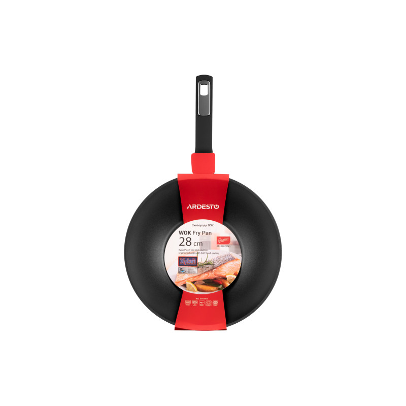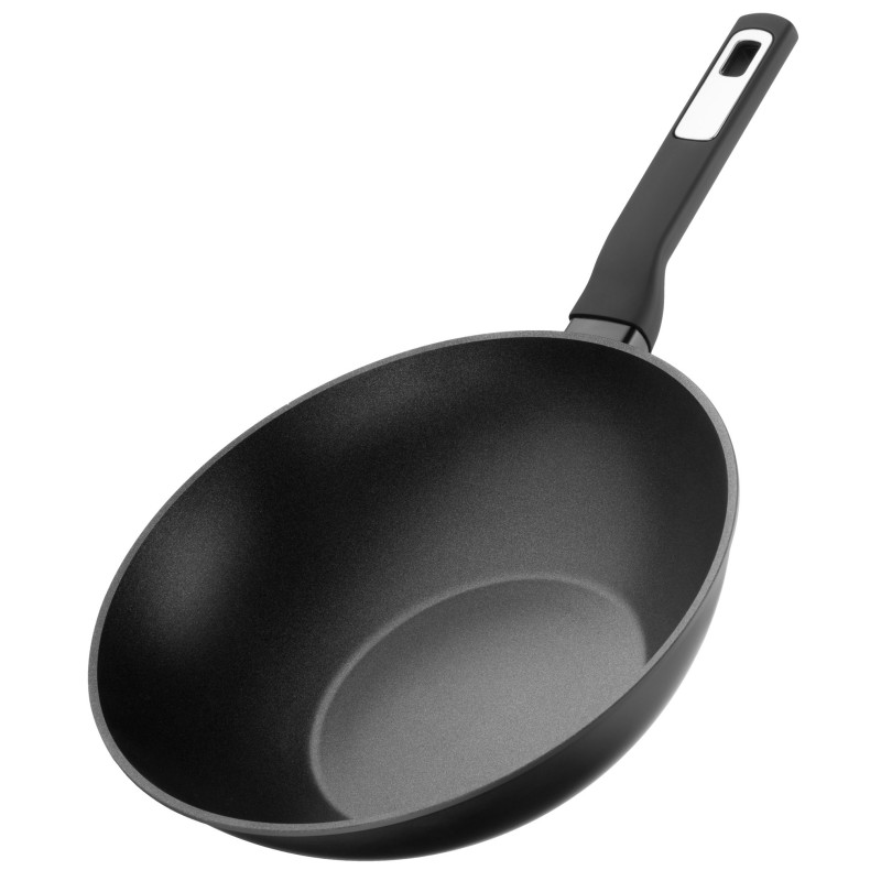 Глибока сковорідка ВОК може використовуватися не тільки для приготування страв китайської кухні, а й для безлічі інших процесів: для смаження, тушкування, як фритюрниця, навіть пароварка! Виріб із кованого алюмінію має протипригарне покриття Xylan Plus 2 та soft-touch-руків’я, сумісний із різноманітними плитами, як-то галогенні, склокерамічні, газові, індукційні, електричні. Товщина стінок і дна – 2,6 і 4 мм відповідно. Діаметр – 28 см. Важливо: аби сковорідка слугувала впродовж тривалого часу, виробник не рекомендує мити її в посудомийній машині.