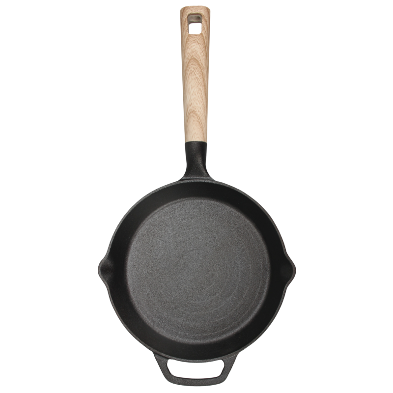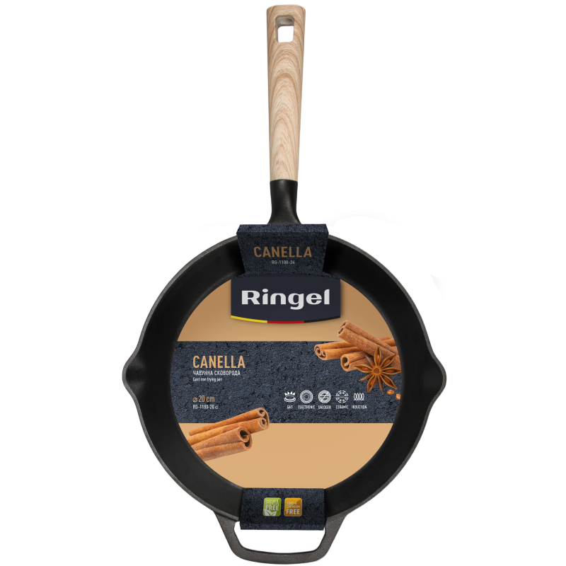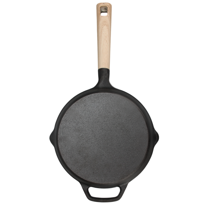 - Зовнішня та внутрішня поверхня сковороди витримана карбонізованим масляним шаром, для уникнення іржі та відтворення антипригарних властивостей