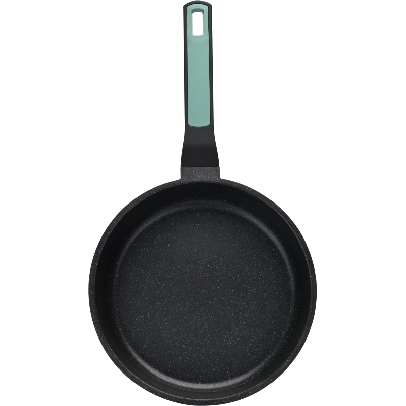 - Ергономічна ручка виготовлена з термостійкого бакеліту з покриттям soft touch і декоративною вставкою із силікону