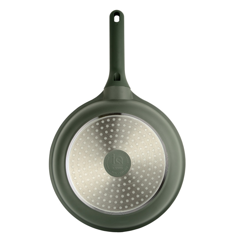 Відмінній ергономіці даної сковороди сприяє зручна ручка з термостійкого бакеліту із силіконовими вставками, яка має додаткове покриття soft-touch. Завдяки такій ручці сковорідки Be Trendy від IQ можна брати навіть мокрими руками.