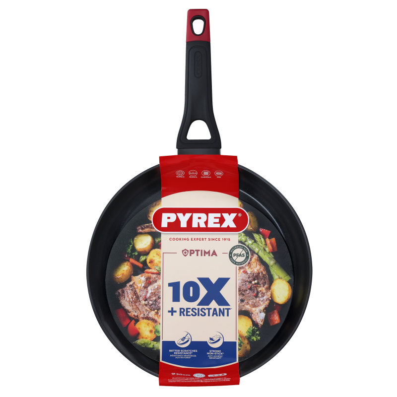 Pyrex Cook&Care – це серія посуду, яка поєднує в собі турботу про ваше здоров'я та навколишнє середовище. Зроблений з переробленого алюмінію, він має міцне керамічне покриття Sol-Gel, що не містить шкідливих PFAS. У 2 рази стійкіший до подряпин і зношування ніж звичайні покриття. Cook&Care підходить для всіх типів плит, включаючи індукційні.