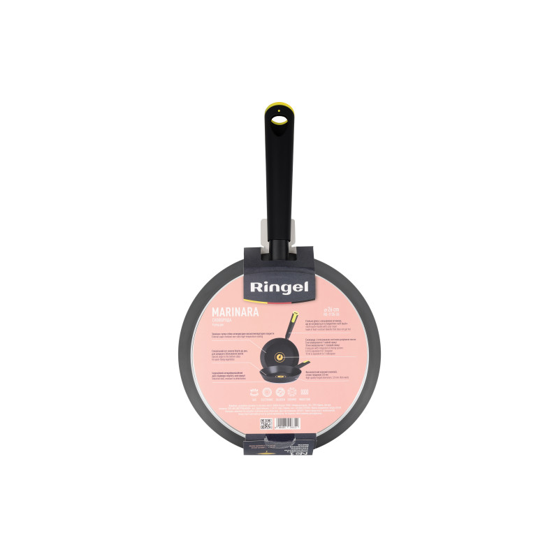 Cковорода MARINARA від Ringel - це універсальний помічник на кухні для готування і розігрівання найрізноманітнішої їжі. Нестандартний кут нахилу борта зроблений як у професійному кухарському посуді. Цей кут нахилу дозволяє готувати овочі з «підкиданням» і швидким обсмаженням. Виготовлені з високоякісного кованого алюмінію, ці сковороди мають товщину 3 мм, є міцним посудом зі швидким і рівномірним нагріванням. У даній серії використовується надстійке тришарове антипригарне покриття, що дозволяє використовувати менше олії при приготуванні.
