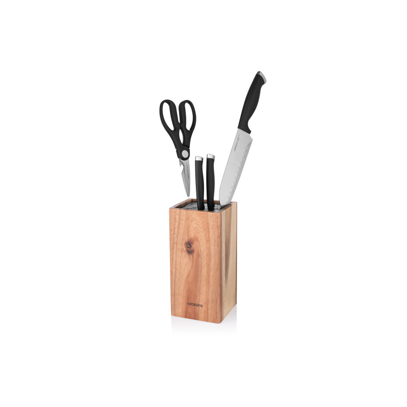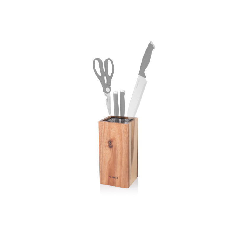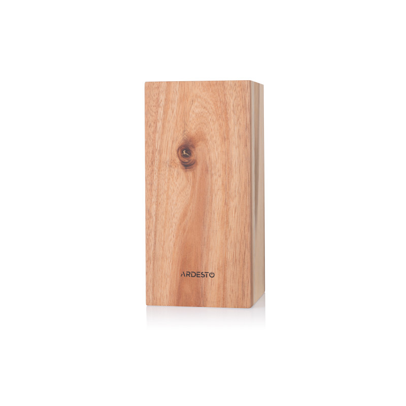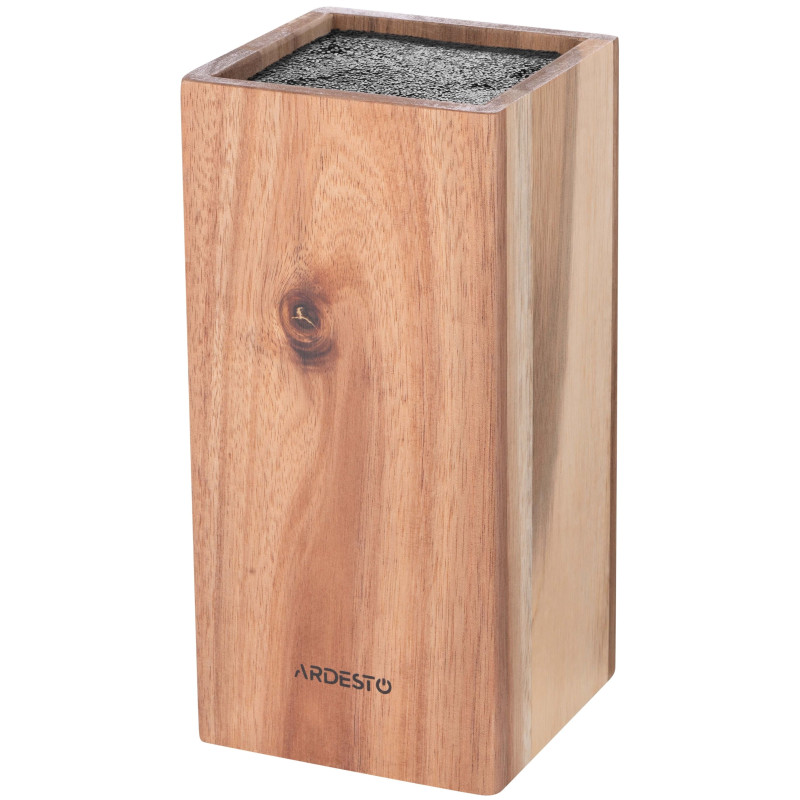 Вдало доповнити інтер’єр кухні та розставити акценти в дизайні допоможе колода для ножів ARDESTO Black Mars. Виріб виготовлено з натуральної деревини – акації, природний колір матеріалу залишився без змін, а для наповнення порожнини використано браш-наповнювач із пластику. Колода має обтічну форму, кути заокруглені. Її розмір без паковання – 10,5 × 10,5 × 23 см. Виробник не рекомендує мити аксесуар у посудомийній машині, адже вочевидь, що деревина погано переносить вплив вологи, проте надає гарантію в разі виявлення виробничого браку впродовж 1 місяця. Країна виробництва: Китай.
