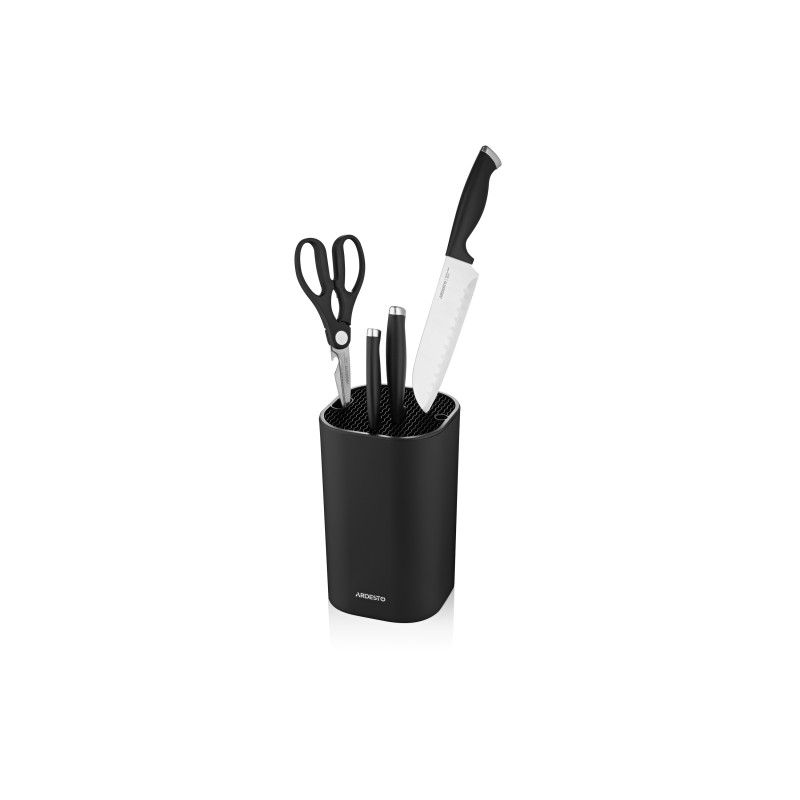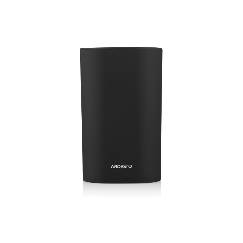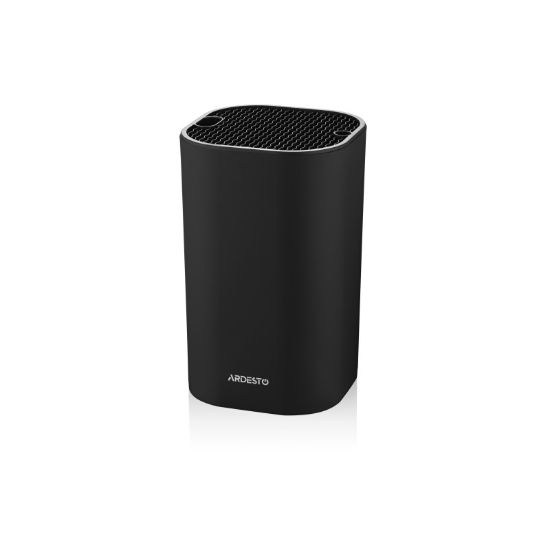 Поціновувачам стриманого дизайну й чорного кольору неодмінно буде до вподоби кухонний аксесуар бренда ARDESTO, що допоможе навести лад на кухонному острівці. Корпус чорного кольору із закругленими кутами не має зайвого оздоблення, згори пластик. Колода дуже компактна, її розмір без паковання – 14 × 14 × 22,8 см. Модель має лише одну особливість щодо догляду: виробник не рекомендує мити виріб у посудомийній машині. Проте надає гарантію в разі виявлення виробничого браку впродовж 1 місяця. Країна виробництва: Китай.